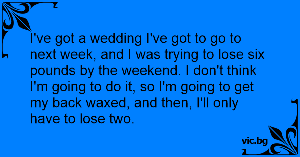I've got a wedding I've got to go to next week, and I was trying to lose six pounds by the weekend. I don't think I'm going to do it, so I'm going to get my back waxed, and then, I'll only have to lose two.