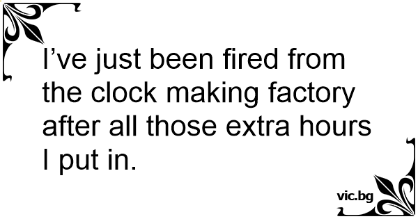 I’ve just been fired from the clock making factory after all those extra hours I put in.