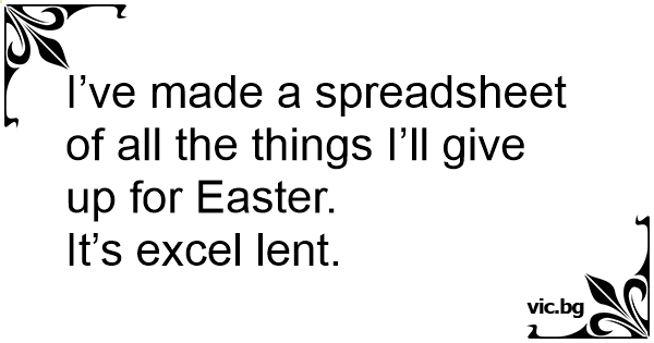 I’ve made a spreadsheet of all the things I’ll give up for Easter.