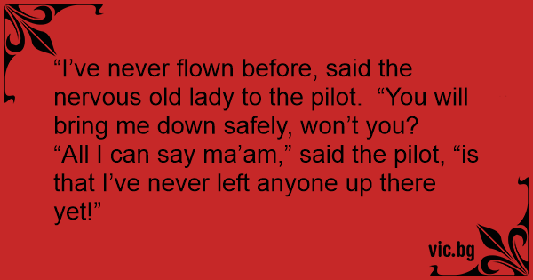 “All I can say ma’am,” said the pilot, “is that I’ve never left anyone up there yet!”