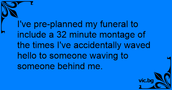 I've pre-planned my funeral to include a 32 minute montage of the times I've accidentally waved hello to someone waving to someone behind me.