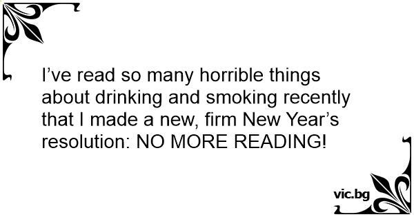 I’ve read so many horrible things about drinking and smoking recently that I made a new, firm New Year’s resolution: NO MORE READING!