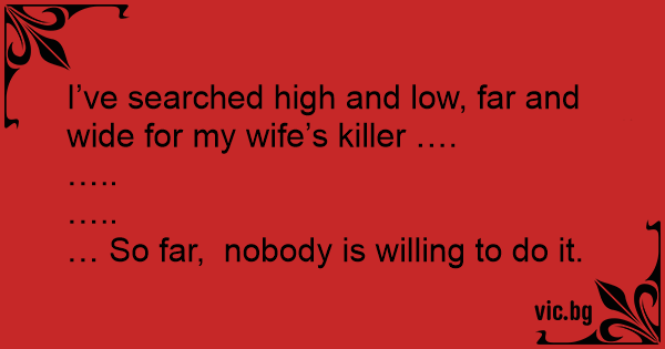 I’ve searched high and low, far and wide for my wife’s killer ….