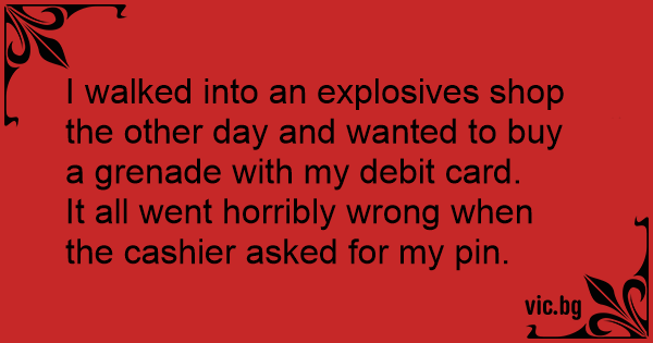 I walked into an explosives shop the other day and wanted to buy a grenade with my debit card.