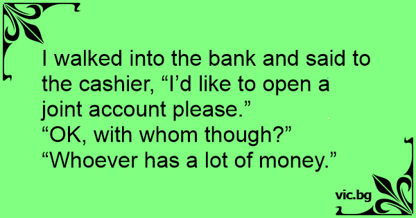 I walked into the bank and said to the cashier, “I’d like to open a joint account please.”