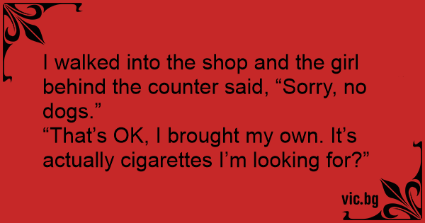 I walked into the shop and the girl behind the counter said, “Sorry, no dogs.”