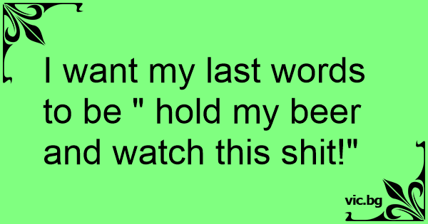 I want my last words to be " hold my вееr and watch this shiт!"