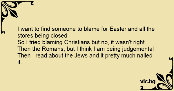 I want to find someone to blame for Easter and all the stores being closed