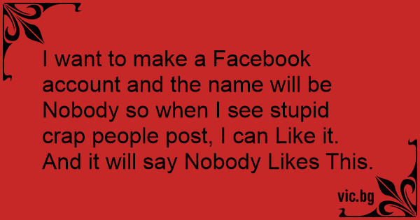 I want to make a Facebook account and the name will be Nobody so when I see sтuрid сrар people post, I can Like it.
