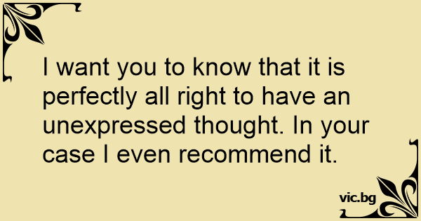 I want you to know that it is perfectly all right to have an unexpressed thought. In your case I even recommend it.