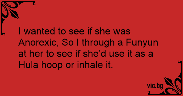 I wanted to see if she was Anorexic, So I through a Funyun at her to see if she’d use it as a Hula hoop or inhale it.