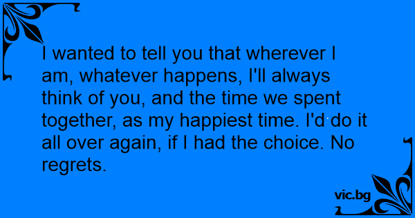 I wanted to tell you that wherever I am, whatever happens, I'll always think of you, and the time we spent together, as my happiest time. I'd do it all over again, if I had the choice. No regrets.