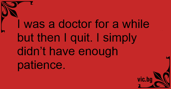 I was a doctor for a while but then I quit. I simply didn’t have enough patience.
