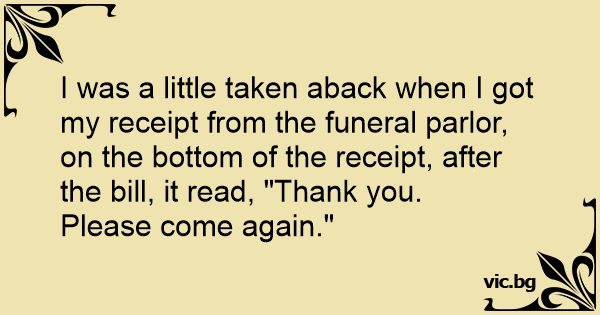 I was a little taken aback when I got my receipt from the funeral parlor, on the bottom of the receipt, after the bill, it read, "Thank you.