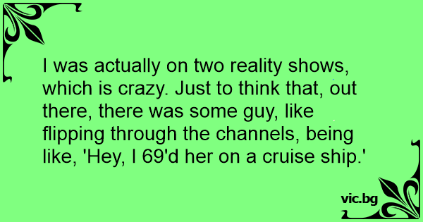 I was actually on two reality shows, which is crazy. Just to think that, out there, there was some guy, like flipping through the channels, being like, 'Hey, I 69'd her on a cruise ship.'