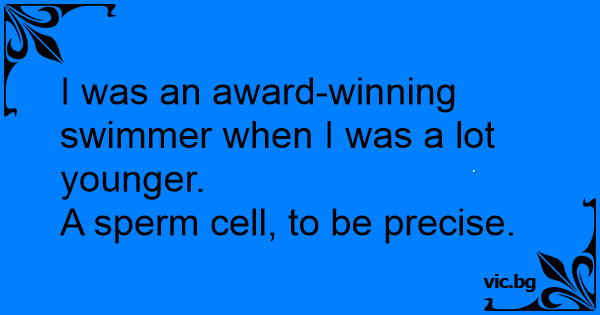 I was an award-winning swimmer when I was a lot younger.A sреrм cell, to be precise. 0 0 0 One-Liner Jokes