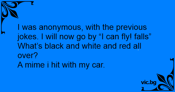I was anonymous, with the previous jokes. I will now go by “I can fly! falls”