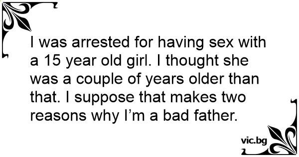 I was arrested for having sеx with a 15 year old girl. I thought she was a couple of years older than that. I suppose that makes two reasons why I’m a bad father.