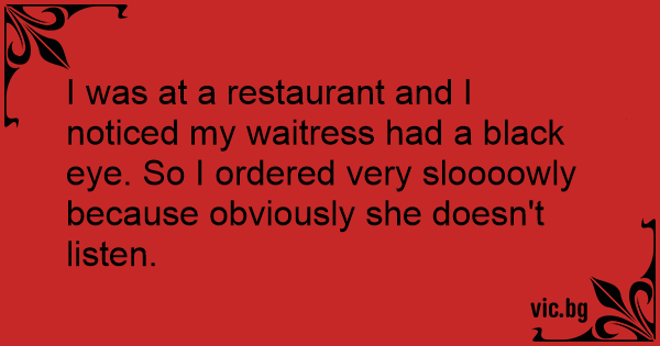 I was at a restaurant and I noticed my waitress had a black eye. So I ordered very sloooowly because obviously she doesn't listen.