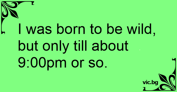 I was born to be wild, but only till about 9:00pm or so.