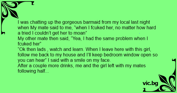 I was chatting up the gorgeous barmaid from my local last night when My mate said to me, “when I fcuked her, no matter how hard a tried I couldn’t get her to moan”