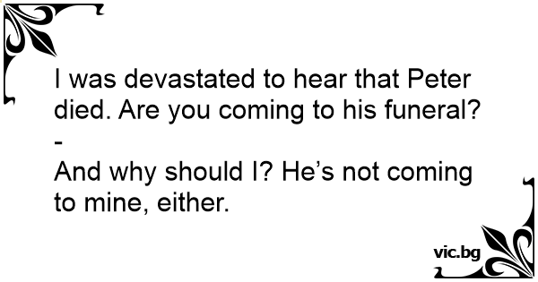 I was devastated to hear that Peter died. Are you coming to his funeral?