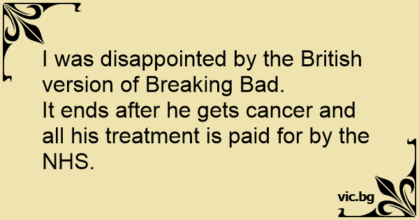 It ends after he gets cancer and all his treatment is paid for by the NHS.