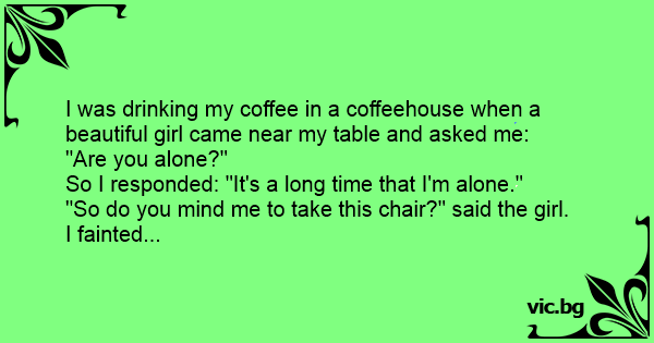 I was drinking my coffee in a coffeehouse when a beautiful girl came near my table and asked me: