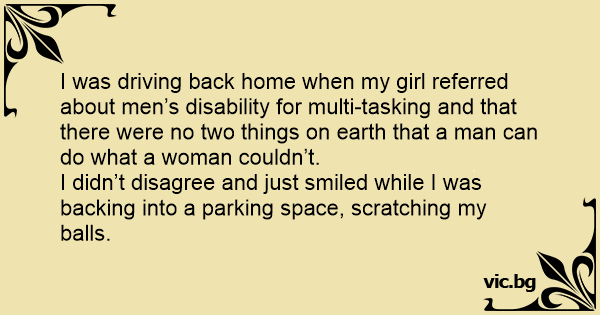 I was driving back home when my girl referred about men’s disability for multi-tasking and that there were no two things on earth that a man can do what a woman couldn’t.