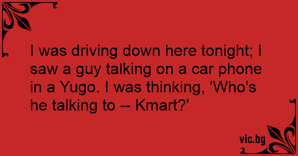 I was driving down here tonight; I saw a guy talking on a car phone in a Yugo. I was thinking, 'Who's he talking to -- Kmart?'