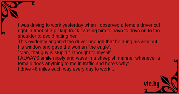I ALWAYS smile nicely and wave in a sheepish manner whenever a female does anything to me in traffic and here’s why: