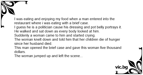 The woman knelt down and told him that her children die of hunger since her husband died.