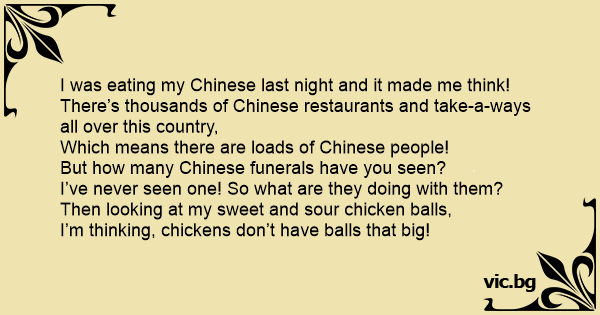 I was eating my Chinese last night and it made me think!