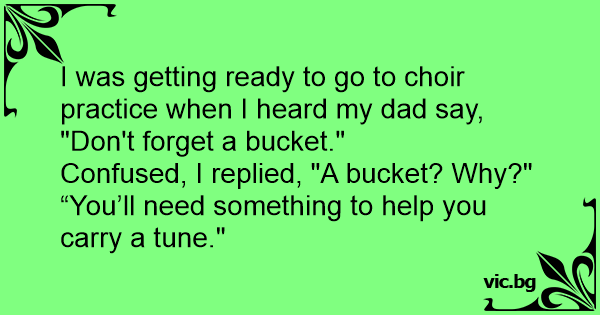 I was getting ready to go to choir practice when I heard my dad say, "Don't forget a bucket."