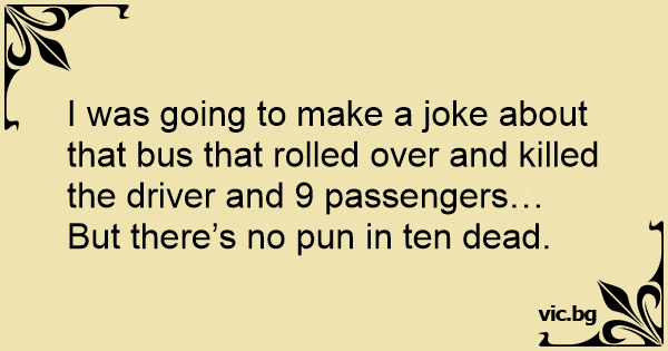 I was going to make a joke about that bus that rolled over and killed the driver and 9 passengers…