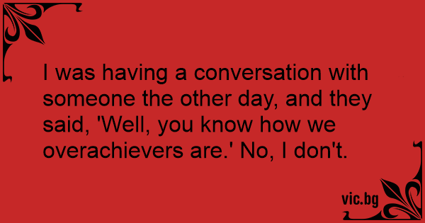 I was having a conversation with someone the other day, and they said, 'Well, you know how we overachievers are.' No, I don't.