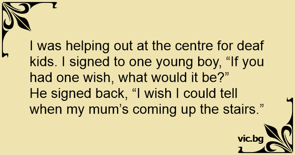He signed back, “I wish I could tell when my mum’s coming up the stairs.”