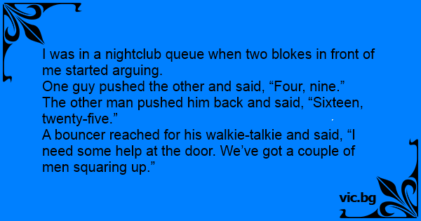 I was in a nightclub queue when two blokes in front of me started arguing.