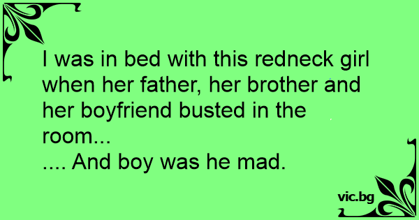 I was in bed with this redneck girl when her father, her brother and her boyfriend busted in the room...