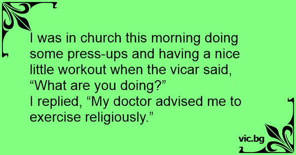 I was in church this morning doing some press-ups and having a nice little workout when the vicar said, “What are you doing?”