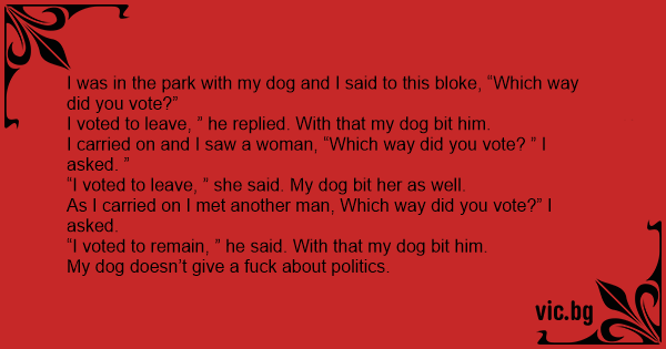 I was in the park with my dog and I said to this bloke, “Which way did you vote?”