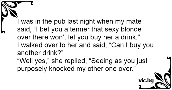 I was in the pub last night when my mate said, “I bet you a tenner that sеxy blonde over there won’t let you buy her a drink.”