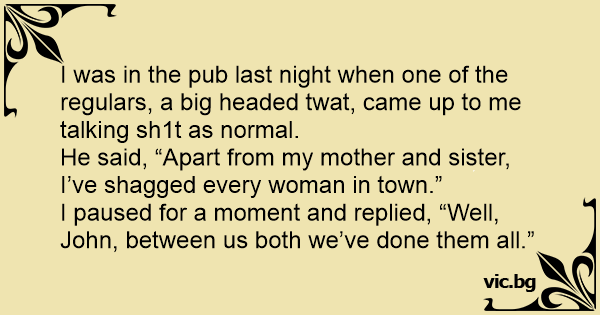 I was in the pub last night when one of the regulars, a big headed тwат, came up to me talking sh1t as normal.