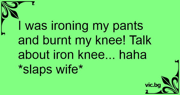 I was ironing my pants and burnt my knee! Talk about iron knee... haha *slaps wife*