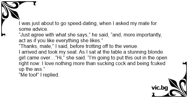 I was just about to go speed-dating, when I asked my mate for some advice.