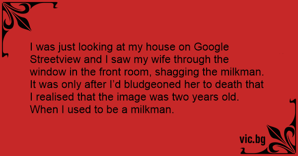 I was just looking at my house on Google Streetview and I saw my wife through the window in the front room, shаgging the milkman.