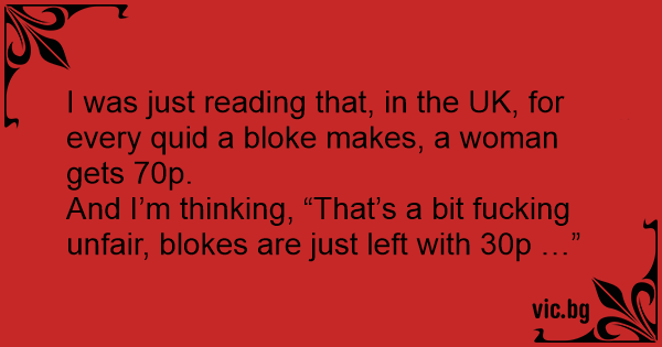 I was just reading that, in the UK, for every quid a bloke makes, a woman gets 70p.
