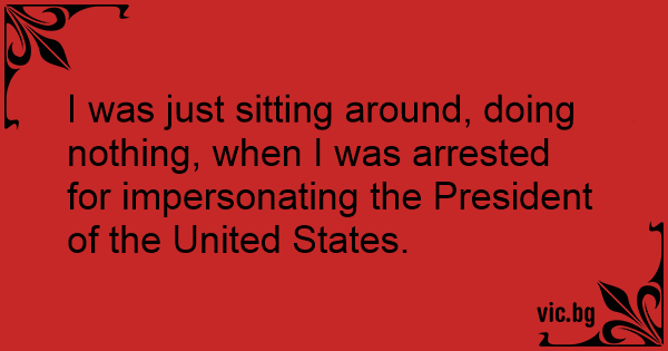 I was just sitting around, doing nothing, when I was arrested for impersonating the President of the United States.
