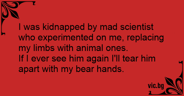 I was kidnapped by mad scientist who experimented on me, replacing my limbs with animal ones.