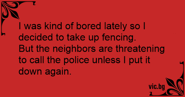 I was kind of bored lately so I decided to take up fencing.